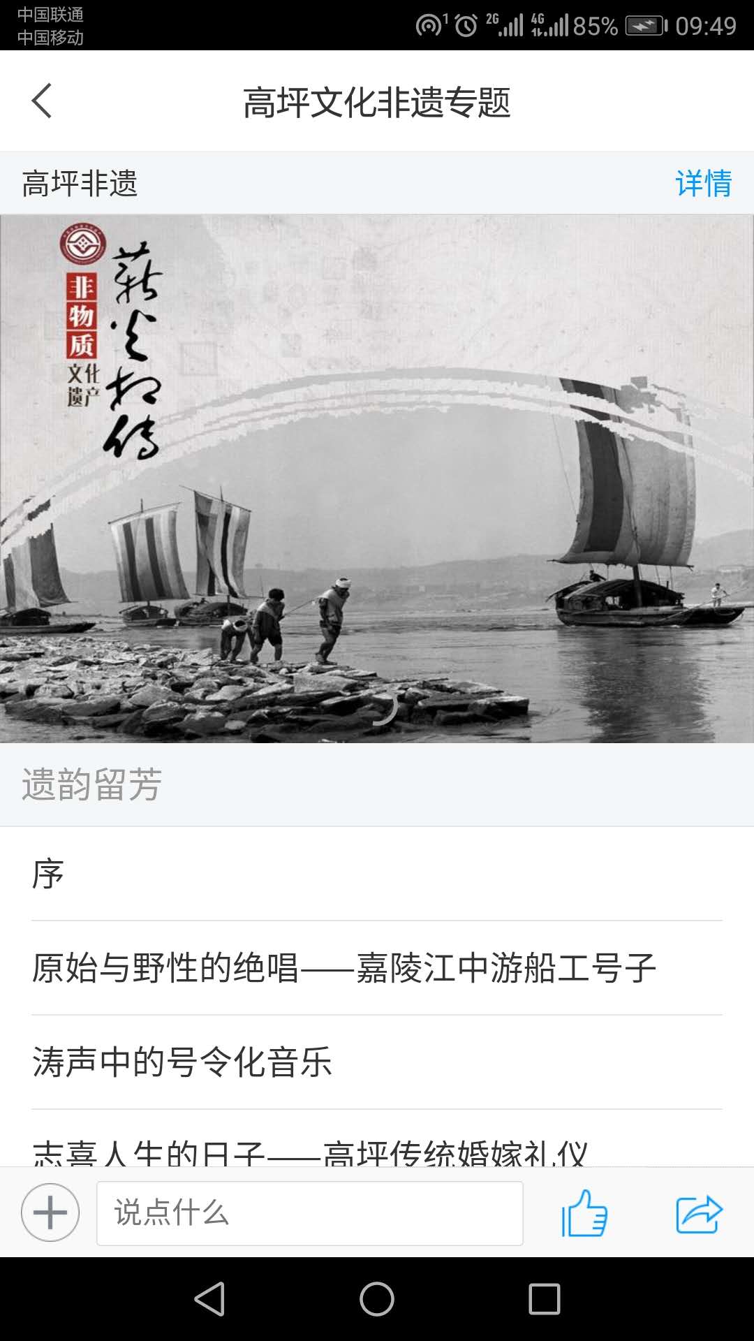 高坪区文化云是综合南充市高坪区文化动态,惠民活动,文化资源及文化服务的一站式发布平台,同时具有互动等社交性质的应用平台。具有文化动态,文化活动,数字展馆,数字文化,特色文化等功能。介绍本地特色及资源,精彩内容一目了然。