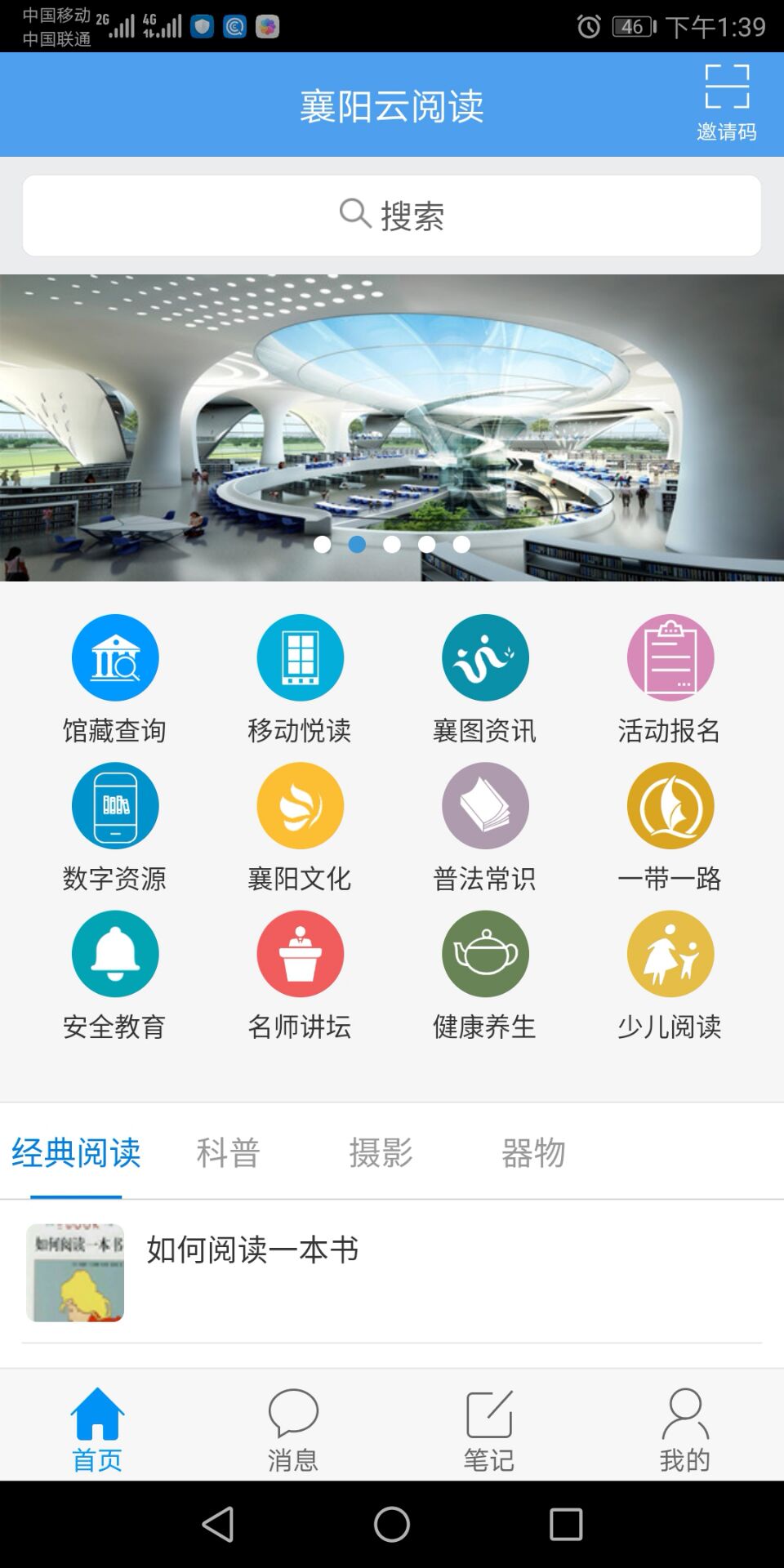书香襄阳,智慧文化。襄阳云阅读是襄阳市图书馆为大众提供公共文化服务与移动阅读服务的便民应用。它面向智能手机、平板电脑等移动终端用户提供读者卡(一卡通)认证;实现馆藏查询、图书续借、资源检索、数字阅读服务;拥有百万册电子图书、海量期刊报纸、中外文献元数据、学术视频及听书资源;同时发布襄阳市文化活动与服务新闻,为市民提供方便、快捷的移动阅读平台和智慧、专业的云端文化服务。