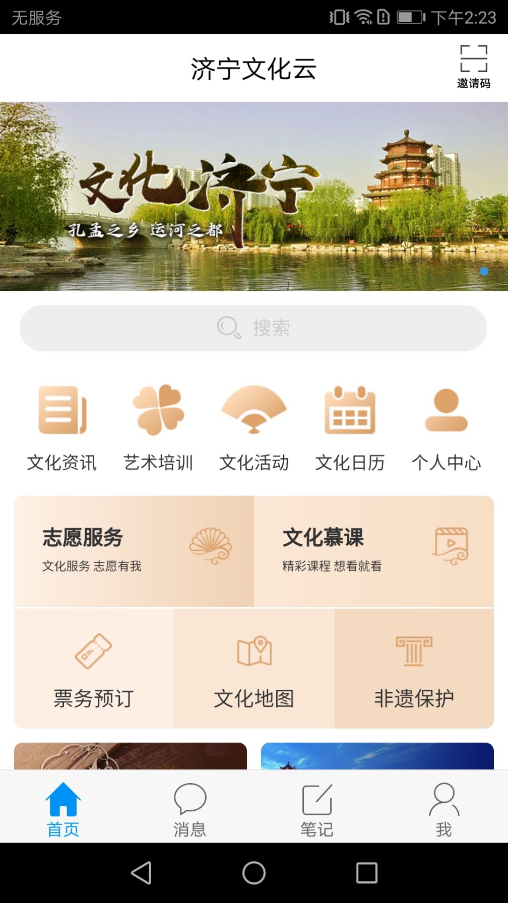 济宁文化云是整合文化资讯、活动信息、场馆信息等文化资源一站式发布平台,同时是具有互动等社交性质的应用平台。集活动报名、文化资讯等为一体,让公共文化的展示空间更加立体。介绍本地特色,精彩文化生活触手可及。