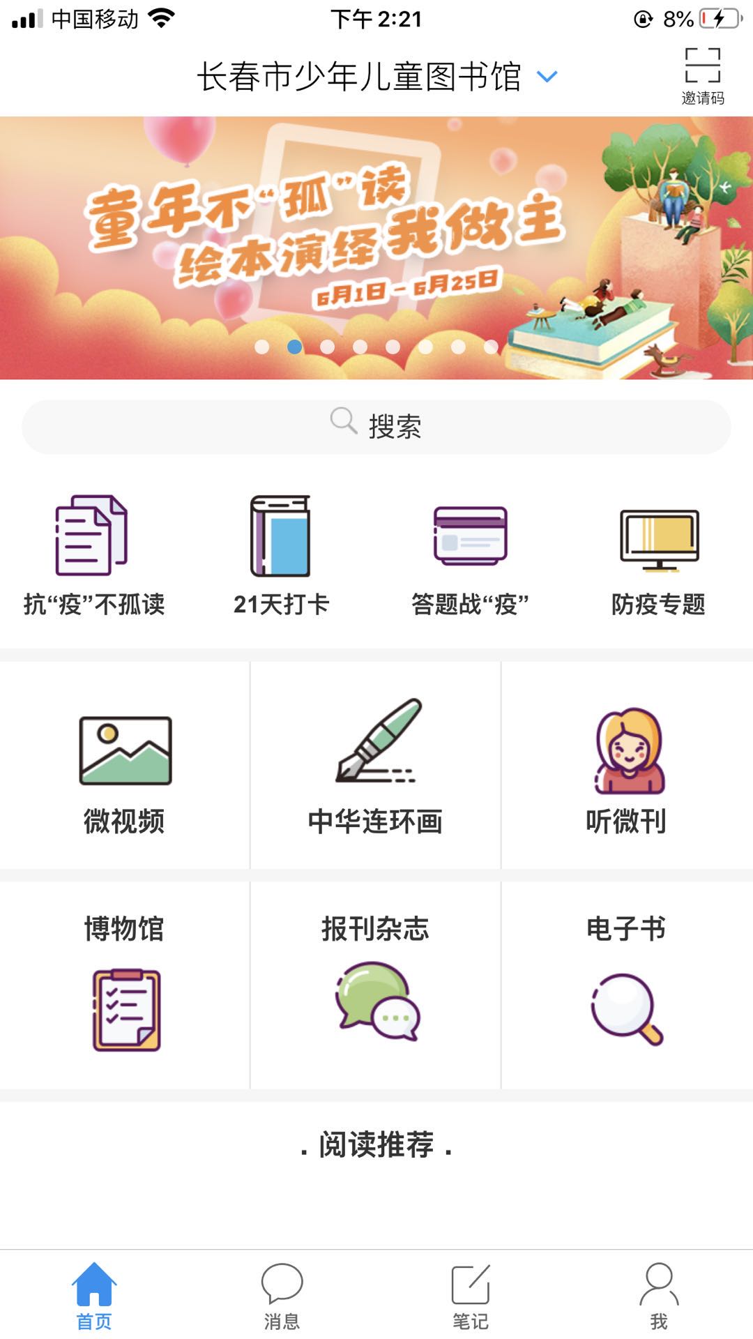 长春市少儿馆客户端是专门为读者制作的移动终端阅读平台,依托集成的海量信息资源与云服务共享体系,为移动终端用户提供了资源搜索与获取、自助借阅管理和信息服务定制的一站式解决方案,添加儿童特色资源数据库,采用富媒体形式从文字到声音以及图片等,为孩子们的课余生活添加知识与乐趣。